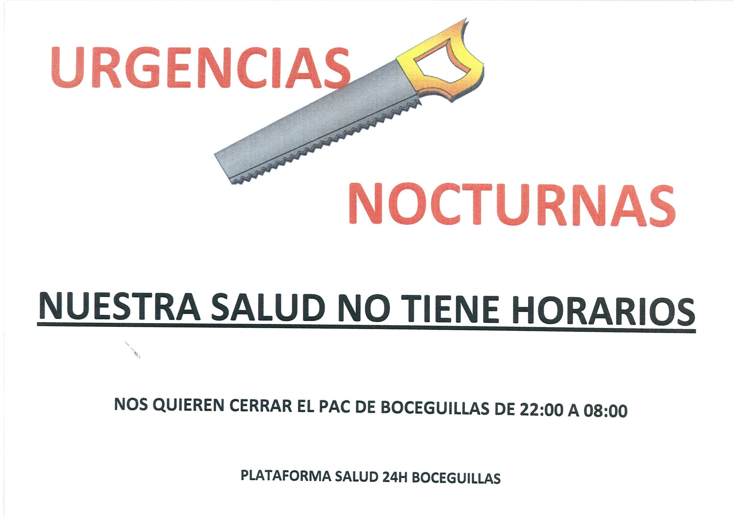 La Plataforma Salud 24 horas. Boceguillas ha elaborado un cartel reivindicativo para la defensa del mantenimiento del servicio de urgencias nocturnas en Boceguillas. Solicitan la colocación en coches y ventanas para que su difusión. TODOS PODEMOS HACER ALGO...