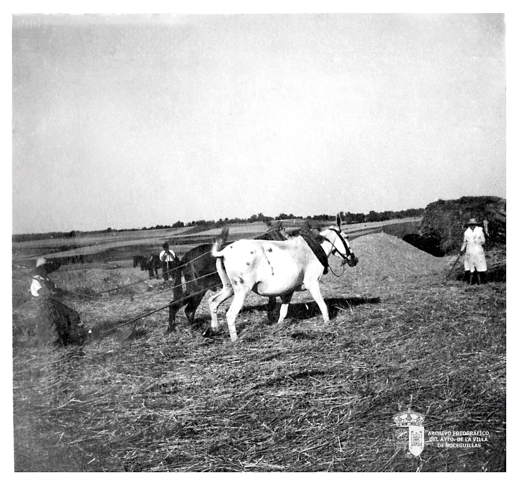 - Maxi arando en las eras de Boceguillas junto a otros agricultores. Imagen cedida por la familia Sanz González